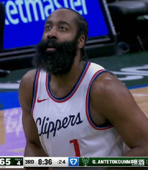 哈登造犯规,但是雄鹿挑战收效,裁判看了回放,改判哈登蹙迫犯规,这一下对快船来说太伤了。
